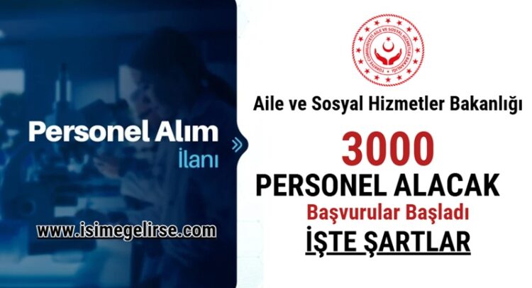 Aile ve Sosyal Hizmetler Bakanlığı Merkez ve Taşra Teşkilatında KPSS (B) grubu puan sıralaması esas alınmak suretiyle Özel Nitelikler tablosunda belirtilen ünvan ve sayıda toplam 3.000 (üç bin) sözleşmeli personel alacak