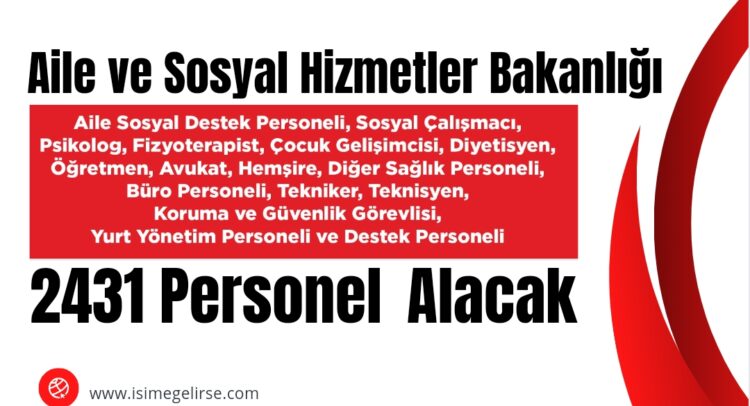 Aile ve Sosyal Hizmetler Bakanlığı tarafından yapılan yazılı açıklamada personel alımı yapılacağı duyuruldu.