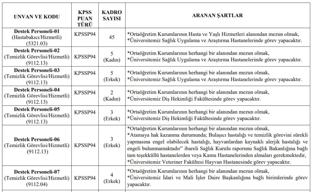 kapsamına giren “hizmetli” kadrosuna ait görevlerin yerine getirilmesi amacıyla istihdam edilecektir. - İlanda bulunmayan hükümler için genel mevzuat hükümleri uygulanır.
