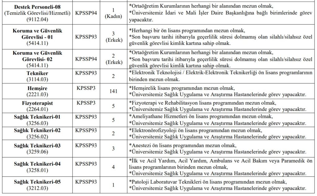 Güvenlik Görevlisi olarak göreve başladıktan sonra bu nitelikleri kaybetmesi durumunda hizmet sözleşmesi feshedilecektir. - İlan edilen kadrolara başvuran adaylar kurumun ihtiyaçları doğrultusunda Üniversitemizin tüm birimlerinde