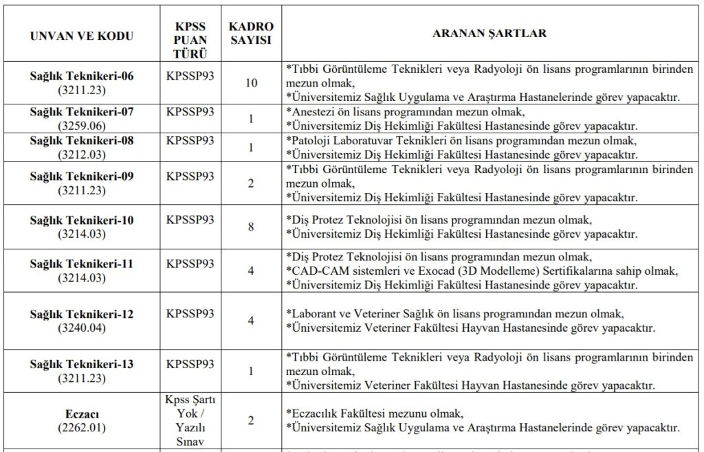 büyük olan adaya öncelik tanınacaktır. - İlana ilişkin bütün duyurular Üniversitemiz Personel Daire Başkanlığının resmî web sayfasında