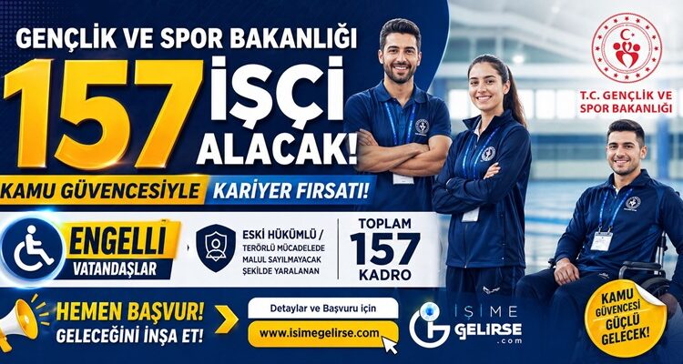 Gençlik ve Spor Bakanlığı 45 Engelli 112 Eski Hükümlü/terörlü mücadelede malul sayılmayacak şekilde yaralanan olmak üzere 157 sürekli işçi alımı yapacak.