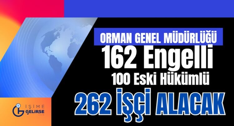Orman Genel Müdürlüğü taşra teşkilatında istihdam edilmek üzere 162 adet engelli ve 100 adet eski hükümlü/TMY statüsünde toplam 262 adet daimi işçi alımı yapılacaktır.