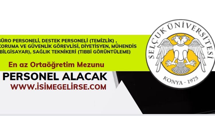 Selçuk Üniversitesinde istihdam edilmek üzere Büro Personeli, Destek Personeli (Temizlik) , Koruma ve Güvenlik Görevlisi, Diyetisyen, Mühendis (Bilgisayar), Sağlık Teknikeri (Tıbbi Görüntüleme) pozisyonlara toplam 45 (kırk beş) adet sözleşmeli personel alacak.