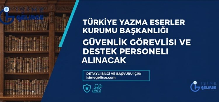 Kültür ve Turizm Bakanlığı Türkiye Yazma Eserler Kurumu Başkanlığı 4/B Sözleşmeli statüde istihdam edilmek üzere 1 Koruma ve Güvenlik Görevlisi ile 5 Destek Personeli olmak üzere 6 sözleşmeli personel alacak.